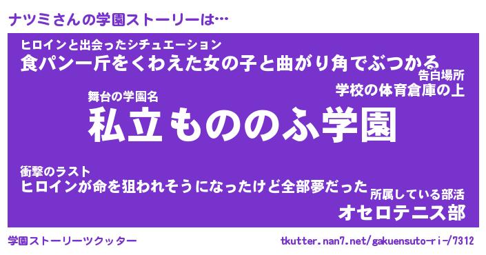 | 男性向けラノベタイトル風あだ名 | 『ナツミの憂鬱』 |