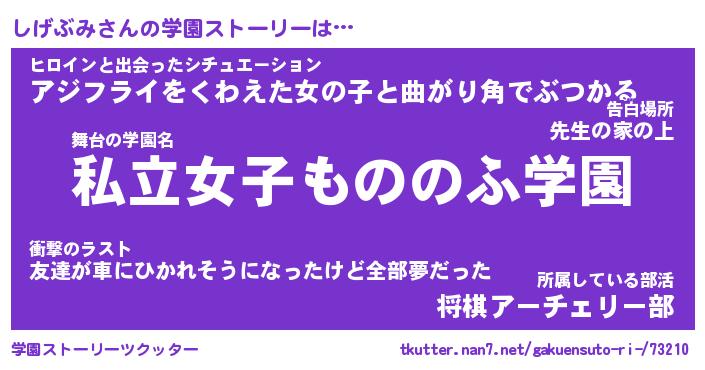 | 男性向けラノベタイトル風あだ名 | 『シゲブミアートオンライン』 |