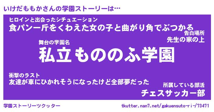 | 男性向けラノベタイトル風あだ名 | 『いけだももかの憂鬱』 |
