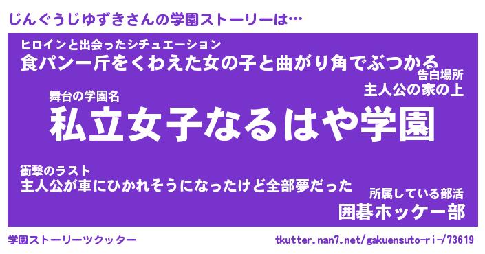 | 男性向けラノベタイトル風あだ名 | 『ジングウジユズキアートオンライン』 |