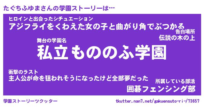 | 女子向けラノベタイトル風あだ名 | 『(仮)たぐちふゆまのやんごとなき事情』 |