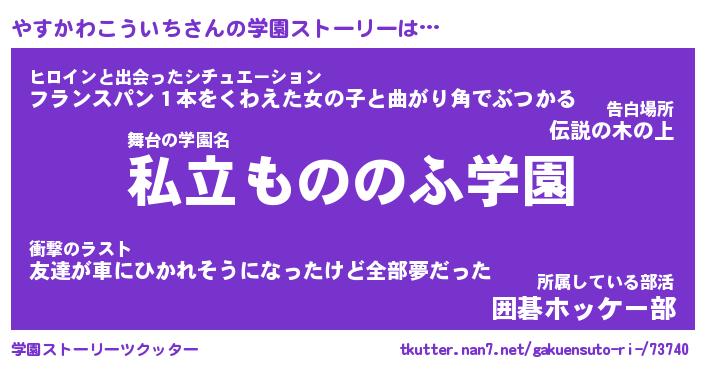 | 男性向けラノベタイトル風あだ名 | 『やすかわこういちの憂鬱』 |