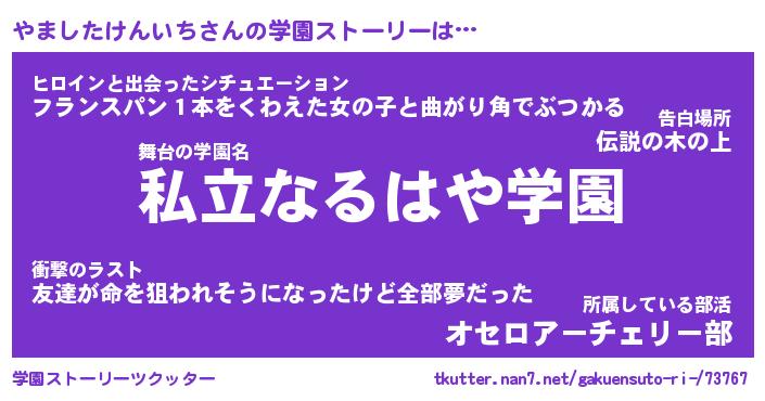 | 女子向けラノベタイトル風あだ名 | 『(仮)やましたけんいちのやんごとなき事情』 |