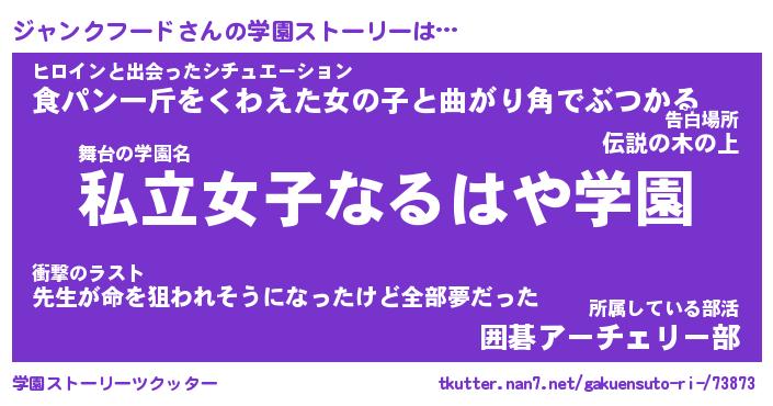 | 女子向けラノベタイトル風あだ名 | 『ジャンクフード姫と円卓の騎士』 |