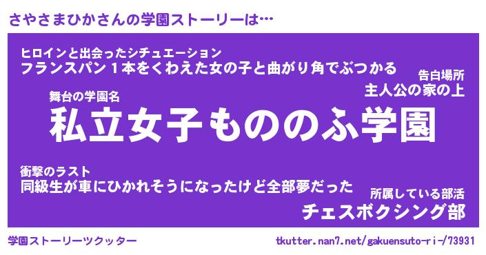 | 女子向けラノベタイトル風あだ名 | 『誰かこのさやさまひかを説明してください! ~契約から始まるウェディング~』 |