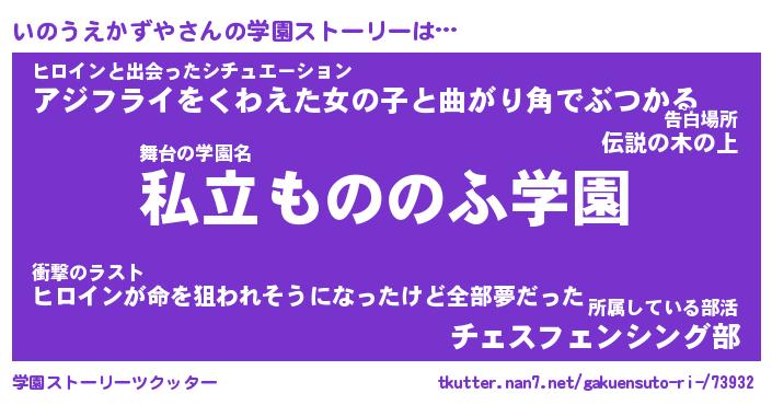 | 男性向けラノベタイトル風あだ名 | 『いのうえかずやの憂鬱』 |