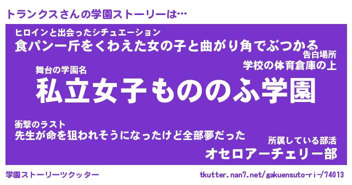 | ファンタジー風あだ名 | 『トラフェル』『エターナルトランクスー』 |