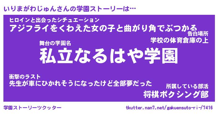 | 男性向けラノベタイトル風あだ名 | 『いりまがわじゅんの憂鬱』 |