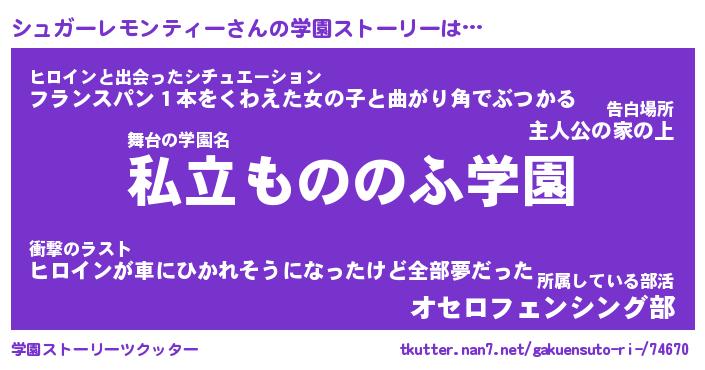 | 男性向けラノベタイトル風あだ名 | 『シュガーレモンティーの憂鬱』 |
