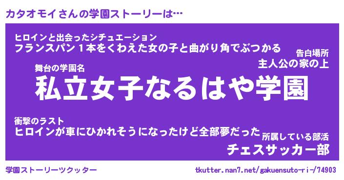 | ヒーロー風カッコイイあだ名 | 『スーパーカタオモイ』『銀牙騎士カタ』 |