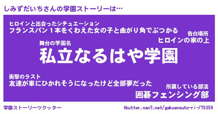 | 男性向けラノベタイトル風あだ名 | 『しみずだいちの憂鬱』 |