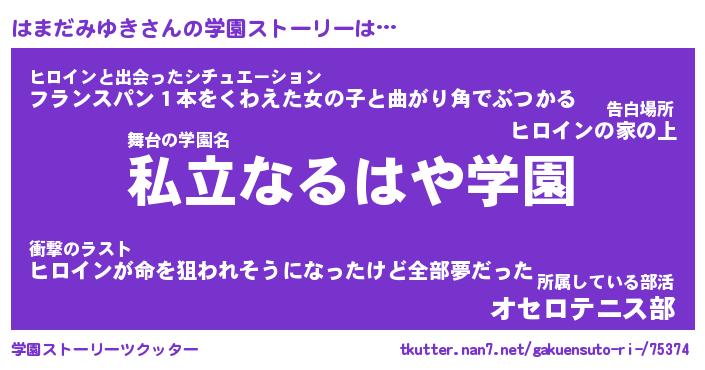 | 男性向けラノベタイトル風あだ名 | 『はまだみゆきの憂鬱』 |