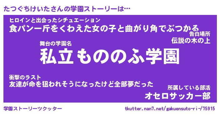 | 男性向けラノベタイトル風あだ名 | 『たつぐちけいたの憂鬱』 |