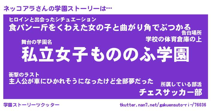 | 男性向けラノベタイトル風あだ名 | 『ネッコアラアートオンライン』 |