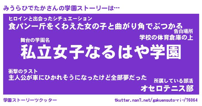 | 女子向けラノベタイトル風あだ名 | 『誰かこのみうらひでたかを説明してください! ~契約から始まるウェディング~』 |
