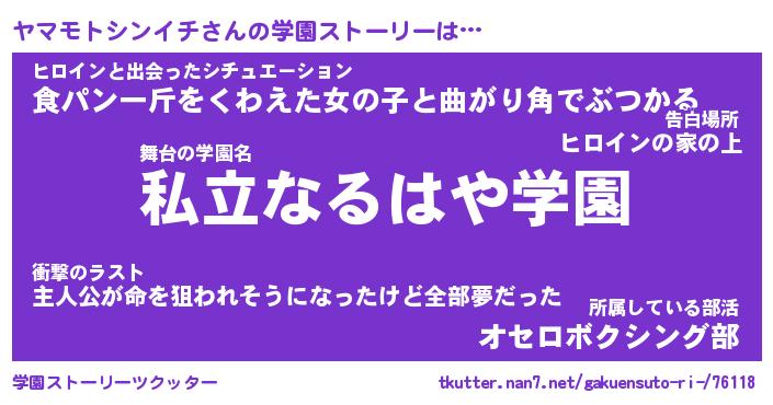 | 伝説のあだ名 | 『伝説のスナイパーヤマモトシンイチ』 |