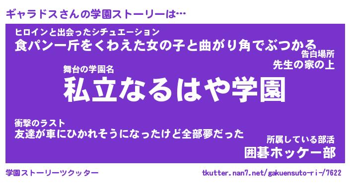 | 女子向けラノベタイトル風あだ名 | 『(仮)ギャラドスのやんごとなき事情』 |