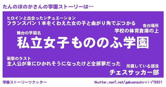 | 女子向けラノベタイトル風あだ名 | 『たんのほのか姫と円卓の騎士』 |