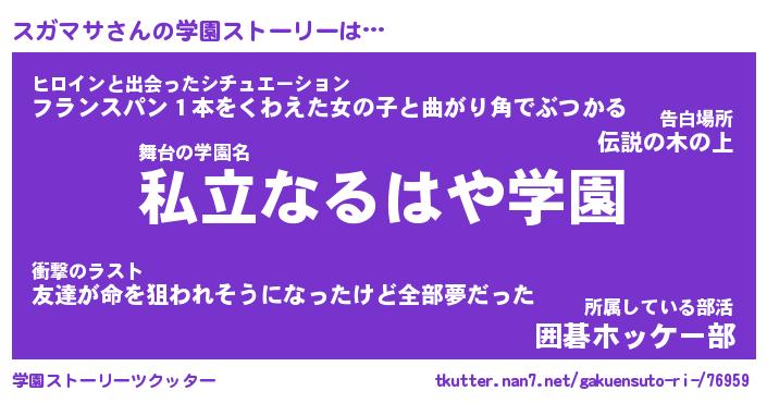 | 女子向けラノベタイトル風あだ名 | 『(仮)スガマサのやんごとなき事情』 |