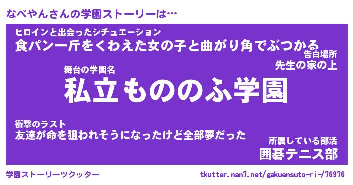| 男性向けラノベタイトル風あだ名 | 『なべやんの憂鬱』 |