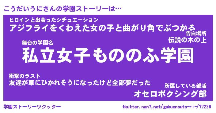 | 男性向けラノベタイトル風あだ名 | 『コウダイウニアートオンライン』 |