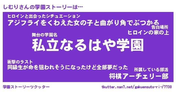 | 男性向けラノベタイトル風あだ名 | 『しむりの憂鬱』 |