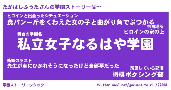 | 女子向けラノベタイトル風あだ名 | 『たかはしふうた姫と円卓の騎士』 |