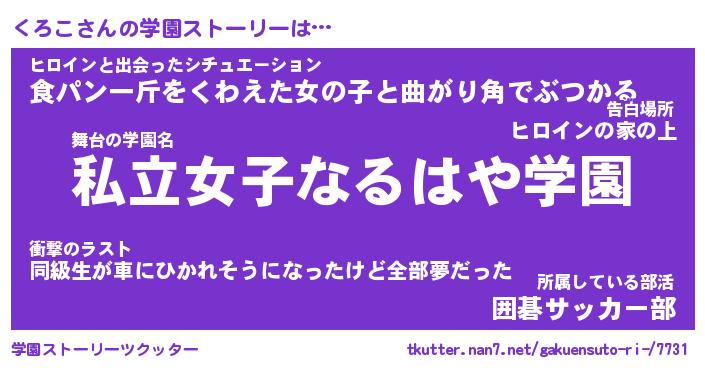 | 女子向けラノベタイトル風あだ名 | 『くろこ姫と円卓の騎士』 |