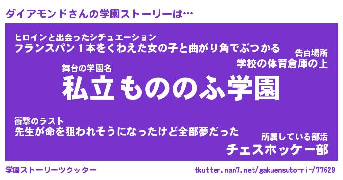 | 女子向けラノベタイトル風あだ名 | 『(仮)ダイアモンドのやんごとなき事情』 |