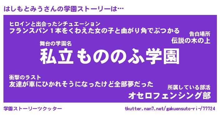 | ヒーロー風カッコイイあだ名 | 『スーパーハシモトミウ』『天弓騎士ハシ』 |