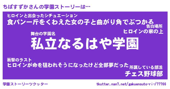 | 女子向けラノベタイトル風あだ名 | 『(仮)ちばすずかのやんごとなき事情』 |