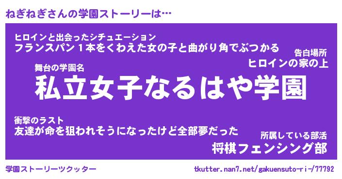 | 女子向けラノベタイトル風あだ名 | 『ねぎねぎ姫と円卓の騎士』 |