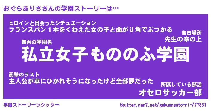| 女子向けラノベタイトル風あだ名 | 『おぐらありさ姫と円卓の騎士』 |