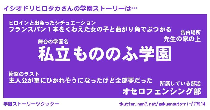 | 男性向けラノベタイトル風あだ名 | 『イシオドリヒロタカの憂鬱』 |