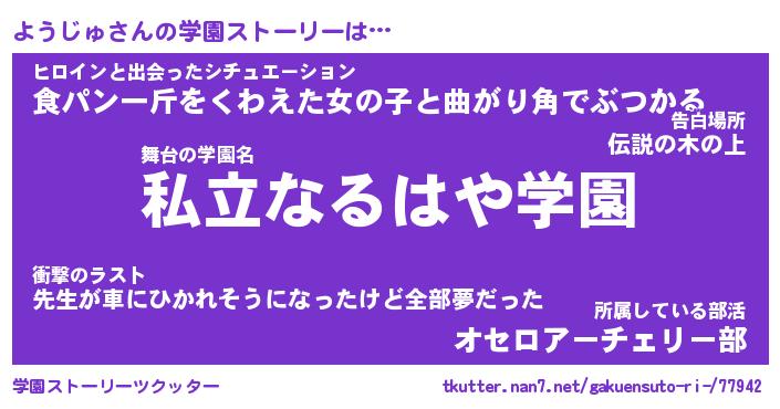 | ファンタジー風あだ名 | 『ヨウフェル』『エターナルヨウジュー』 |