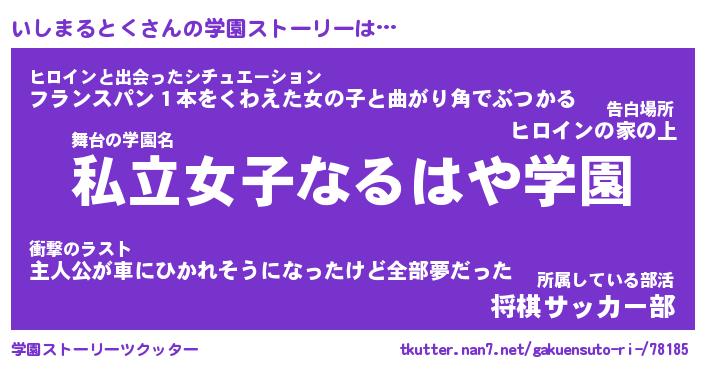 | ヒーロー風カッコイイあだ名 | 『スーパーイシマルトク』『天弓騎士イシ』 |