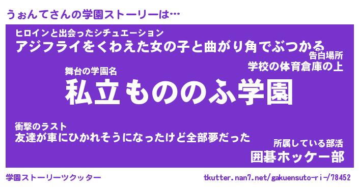 | 男性向けラノベタイトル風あだ名 | 『うぉんての憂鬱』 |