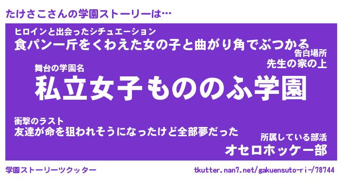 | ファンタジー風あだ名 | 『タケフェル』『エターナルタケサコー』 |