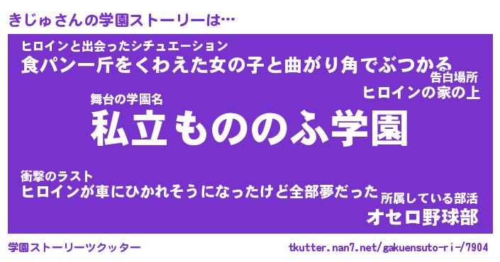 | 男性向けラノベタイトル風あだ名 | 『きじゅの憂鬱』 |