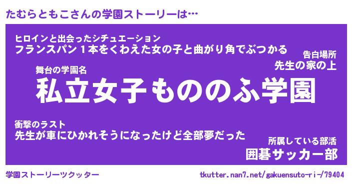 | 男性向けラノベタイトル風あだ名 | 『タムラトモコアートオンライン』 |
