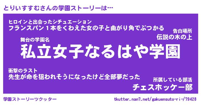 | 伝説のあだ名 | 『封印されしスナイパーとりいすすむ』 |