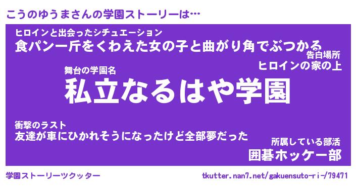 | 男性向けラノベタイトル風あだ名 | 『こうのゆうまの憂鬱』 |