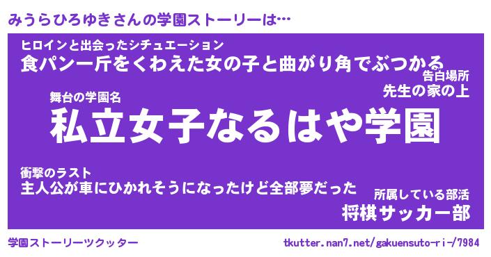 | 伝説のあだ名 | 『封印されしスナイパーみうらひろゆき』 |