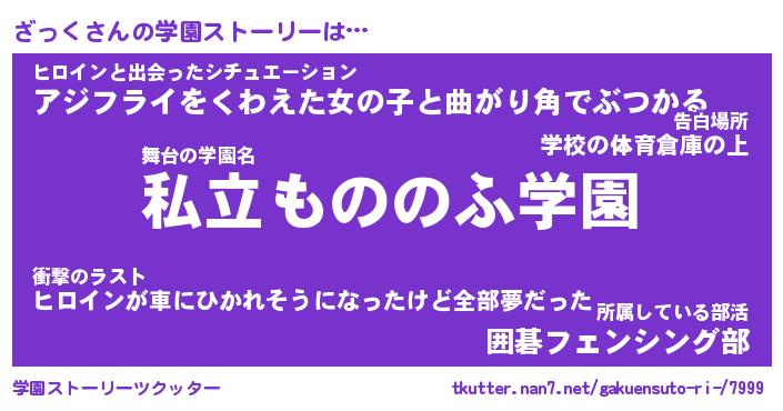 | 男性向けラノベタイトル風あだ名 | 『ざっくの憂鬱』 |
