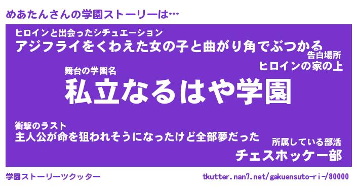| 男性向けラノベタイトル風あだ名 | 『めあたんの憂鬱』 |
