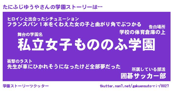 | 女子向けラノベタイトル風あだ名 | 『誰かこのたにふじゆうやを説明してください! ~契約から始まるウェディング~』 |