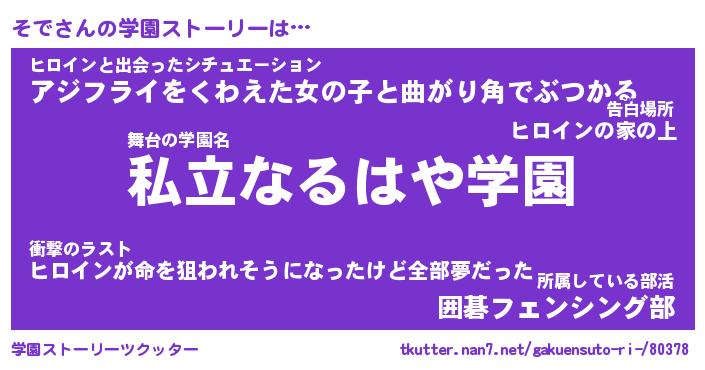 | 告白場所 先生の家の上 …「ふぃぎゅこ」 | 2月17日 06:24 |