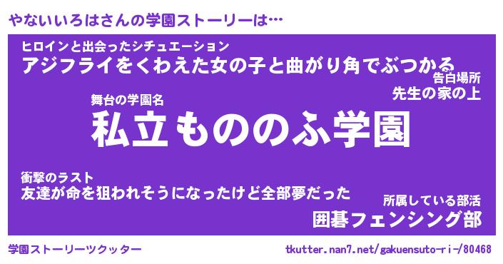 | 女子向けラノベタイトル風あだ名 | 『(仮)やないいろはのやんごとなき事情』 |