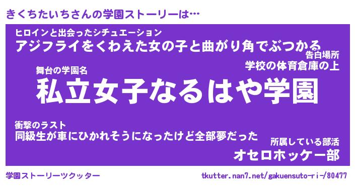| ヒーロー風カッコイイあだ名 | 『スーパーキクチタイチ』『天弓騎士キク』 |