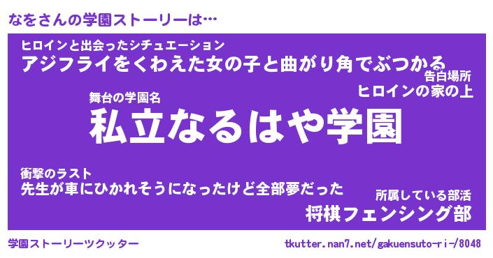 | 告白場所 先生の家の上 …「ふぃぎゅこ」 | 2月17日 06:24 |